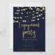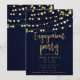 Invitation Fête de fiançailles Bleu Or Bois Rustique & Lumièr