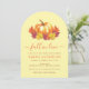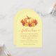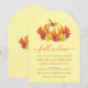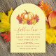 Une invitation de douche de mariée en forme d'arche dans des couleurs d'automne : orange, rouge et jaune. Le thème est "Tombez amoureux".