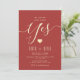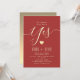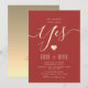 Calligraphie simple, invitation de fête de fiançailles élégante rouge avec un cœur en faux or et monogramme des prénoms au dos.