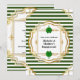 Un beau design de rayures horizontales vert forêt et blanc encadré par un bord festonné faux or sur fond blanc. Il y a deux trèfles à quatre feuilles verts sur le devant donnant une sensation d'élégance et de style.