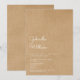 Un design moderne et simple qui présente les noms du couple heureux dans un élégant script au-dessus des détails spéciaux de la fête de fiançailles sur un fond boho kraft. Conçu par Thisisnotme©