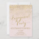 Cartes d'Invitation Fête de Fiançailles Rose Poudré et Confettis Dorés