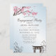 Invitation à la fête de fiançailles Sakura Japanese Cherry Blossom. Ce design présente de belles branches de sakura rose japonais fleur de cerisier sur un fond bleu ciel. Accentué de bambou. Personnalisez ce design personnalisé avec vos propres détails.