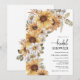 Faire-part de Baby Shower Thème Tournesol. Ajoutez une touche de soleil à votre baby shower avec ces magnifiques tournesols jaunes aquarelles peints à la main, marguerites blanches et feuilles vert sauge et terracotta. Parfait pour une fête romantique rustique d'automne ou une garden-party d'été en plein air, ces invitations de baby shower bohème chic époustouflantes donneront le ton pour votre jour spécial. Trouvez des produits coordonnés dans les Faire-part de Mariage Tournesol Aquarelle Rustique.