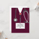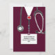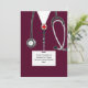 Invitation à une fête de fin d'études d'infirmière ou annonce de fin d'études à l'école d'infirmières avec des tenues d'hôpital bordeaux créatives et un stéthoscope.