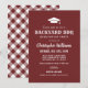 Définissez le ton pour un barbecue classique avec cette invitation de fin d'études de couleur marron rouge présentant une icône de toque de diplômé et une typographie rustique « Backyard BBQ » en gras. Idéal pour une réception estivale, une célébration dans la cour ou un barbecue décontracté. Personnalisez le nom, la date, l'heure, l'adresse et la réponse. Le dos présente un motif gingham coordonné.