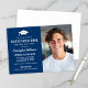 Célébrez votre aîné avec cette invitation moderne de fête de fin d'études avec une mise en page audacieuse « BBQ dans le jardin » associée à une grande photo. Le dos coordonné présente un motif classique de gingham marine avec une photo encadrée pour un look soigné et masculin. Personnalisez avec le nom du diplômé, la date, l'heure et les détails de la fête pour une invitation facile et remarquable.