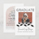 Félicitations ! C'est un moment de fierté lorsque vous ou un être cher traverse la scène pour recevoir un diplôme. Pour célébrer cet événement important, envoyez une invitation de fête de fin d'études parfaite. Elle présente un design contemporain avec un cadre photo en forme d'arche et un modèle d'invention moderne au verso. Des chapeaux de fin d'études impressionnants flottant au-dessus de l'annonce de fin d'études sur le devant captureront l'essence de l'occasion.