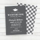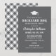 Célébrez votre diplômé avec cette invitation de fête de fin d'études au charbon de bois gris foncé, avec une typographie audacieuse « Backyard BBQ », une icône de chapeau de diplômé et un style rustique épuré. Idéal pour un barbecue décontracté, une maison ouverte ou une célébration estivale dans la cour. Le verso présente un motif à carreaux gris et blanc coordonné pour une ambiance classique de pique-nique. Personnalisez avec le nom de votre diplômé et les détails de la fête.