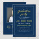 Invitation Fête de fin d'études en photo Bleu marine et Or