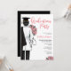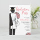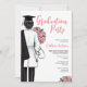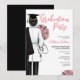 Invitation de la fête de fin d'études Médicales. Le médecin ou l'infirmière grand parti Invitation pour votre fille, nièce, mère, tante, cousin, ou ami. Invitation pour les grandes fêtes célébrant les femmes qui viennent d'obtenir leur diplôme de l'école de médecine, de l'école de sciences infirmières ou d'autres diplômes de médecine. Portant le portrait d'une femme aux cheveux foncés dans un petit chignon, portant un manteau de laboratoire avec une robe de graduation noire drapée sur une épaule, et un bouquet de jolies fleurs roses dans son autre main, avec un stéthoscope de médecin couché autour de son bras. Acents de typographie de script rose.