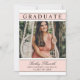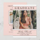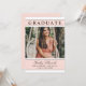 Célébrez votre diplômé avec cette invitation moderne de couleur rose pour une fête de fin d'études avec un titre "DIPLÔMÉ" clair et une élégante mise en page encadrée de la photo. Personnalisez le nom du diplômé, l'école, l'année de promotion et les détails de la fête pour un design soigné et facile à lire. Le verso coordonné comprend une photo encadrée assortie et les détails de la fête pour un ensemble cohérent. Une palette de couleurs douce et intemporelle parfaite pour les célébrations de fin d'études du printemps et de l'été.