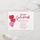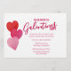 Invitation à la fête de Galentines avec 3 cœurs à gauche, un dans chaque rouge, rose foncé et rose clair, invitant vos copines à célébrer votre amitié. Modifiez les détails personnels directement sur la page du produit. Illustration originale de Dogwood & Thistle.