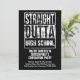 Ajoutez votre texte et les détails de votre événement ou de votre fête de remise de diplômes à cette carte d'invitation de grand parti. Tout droit de votre lycée ou de la classe d'année de collège, etc. Ou customisez les mots à votre année, à votre école ou à n'importe quoi ! Que représentez-vous ? Ajoutez les détails de votre événement et d'autres informations pertinentes pour un grunge vintage style de rue en détresse patiné personnalisé "droit dehors" ou tout droit du cadeau dans un texte grungy noir et blanc. Idéal pour une musique de groupe, 1980, 80 ou 90's rap street event.