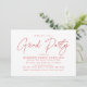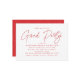 Célébrez en style avec ces invitations amusantes et modernes à la remise des diplômes, avec "Grad Party" dans un script rouge tendance avec vos détails de graduation personnalisés affichés ci-dessous. Le design audacieux et simple fait de ces invitations rouges de fin d'études un lieu idéal pour les diplômés du secondaire et du collège. Le dos présente une motif géométrique joueuse en pointillés rouges et blancs, ajoutant une touche unique à votre célébration.