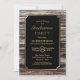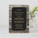 Une invitation à la fête de graduation en bois bordée d'or rustique avec du texte en or sur un arrière - plan noir.