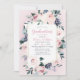 Un cadre géométrique entouré d'aquarelle botanique fleurie et verdure dans un doux rougissement et marine, moderne, féminine et élégante invitation à la remise des diplômes.
