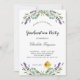 Un arrière - plan blanc décoré de fleurs de lavande et de verdure d'eucalyptus. Personnalisez et un nom et des détails. Retour : lavande, arrière - plan violet.