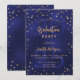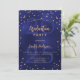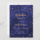 Une carte d'invitation glamour pour une fête de remise de diplômes pour lui et elle. Un arrière - plan bleu marine décoré d'étoiles faux or. La couleur bleue est inégale. Personnalisez et ajoutez une année, un nom, une année et des détails du parti. Le texte Graduation et le nom sont écrits avec un script de style à la main moderne. Texte de couleur dorée. Retour : bleu marine arrière - plan et étoiles d'or.