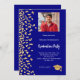 Une invitation moderne et élégante à Graduation Party. Un arrière - plan bleu marine décoré de faux confettis dorés. Personnalisez et ajoutez une photo, un nom et des détails de la fête. Texte blanc.