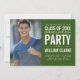 Invitation de la fête de graduation masculine moderne. Design audacieux vert et blanc avec option photo. Graduation Party Invitation pour lui avec un design simple et propre. Conception de modèles parfaite et flexible pour les diplômés du secondaire, de l'enseignement supérieur ou de l'université. Ajoutez les informations de votre parti, votre nom et d'autres détails. Design par Elke Clarke© Autres couleurs ou effets arrière - plans disponibles.