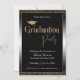 Invitation Fête de Graduation Noir & Blanc Ombre Or Confetti