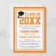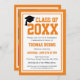 Cette Invitation de la Fête de l'Orange et de la Photo Blanche est une excellente façon de célébrer le baccalauréat ou le baccalauréat. Personnalisez ceci avec le nom, l'école, l'année, les détails de la fête et la photo du diplômé au dos. Cet invitation présente une typographie audacieuse aux couleurs de l'école orange avec une bordure orange et blanche.
