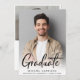 Invitation de la fête de remise de diplômes moderne avec la photo de la grade superposée avec "Graduate" dans un script audacieux contemporain. Ajoutez leur nom, année de classe et école en typographie simple. Au verso, ajoutez une photo supplémentaire et les détails de la fête.