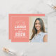 Annoncez votre baccalauréat ou diplômé de l'université en style avec cette faire-part de remise de diplômes et l'invitation de la fête. La carte recto-verso présente un portrait supérieur du diplômé avec un casquette de grade et un design simple et moderne de typographie blanche. Saumon ou corail orange / rose arrière - plan peut être changé en une couleur différente avec la fonction "Customiser", puis Éditer / Arrière - plan pour sélectionner une autre couleur.