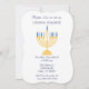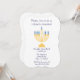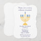 Rejoignez-nous pour un dîner de Hanouka en utilisant cette charmante invitation bleu et blanc. Avec un fond blanc et un menorah doré, il y a des bougies bleues sur le menorah. Les modèles à compléter faciles rendent la personnalisation très simple. Achetez le vôtre dès aujourd'hui.
