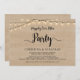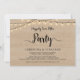 Magnifique invitation / carte d'annonce de mariage en fuite amoureuse avec guirlandes lumineuses, dans un style rustique en bois de ferme. C'est parfait pour votre réception de mariage et votre fête de célébration post-mariage. Ajoutez vos détails dans une police / lettrage assorti. #TeeshaDerrick
