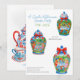 Célébrez un quart de millénaire d'indépendance américaine avec notre invitation exquise "Garden Party du Quart de Millénaire". Ce design élégant est l'apogée du style chinoiserie grandmillennial, mettant en vedette un charmant trio de pots à gingembre ornés de rubans rouges, chacun représentant une scène unique de thé dans le jardin.