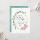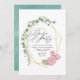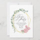 Invitation de fête de jardin tendance avec feuillage de eucalyptus géométrique, roses roses et cadre géométrique doré avec lavis d'aquarelle verte au verso. Célébrez votre occasion spéciale avec cette invitation de fête de jardin élégante avec un cadre doré géométrique orné de feuilles d'eucalyptus à l'aquarelle et de roses roses délicates. Parfait pour les anniversaires, les enterrements de vie de jeune fille ou toute célébration en plein air. Le texte personnalisable vous permet de personnaliser chaque détail pour votre événement unique.