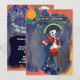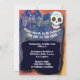 Invitez votre famille et vos amis à célébrer le Jour des Morts ou Día de los Muertos. Moment de joie affirmative de la vie alors que vous célébrez votre vie et ceux du passé. Le design convient également à ceux qui organisent une soirée de costumes d'Halloween. Le design présente un crâne en sucre sur le côté de l'invitation et un membre d'un groupe Mariachi squelettique jouant pour les âmes des morts.