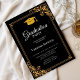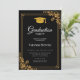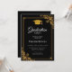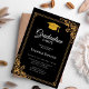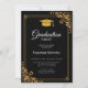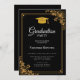 Black And Gold Classic Graduation Cap Party Invitation script d'études supérieures portes ouvertes obtention d'un diplôme en photo. Ajoutez vos photos préférées avec une élégante calligraphie script et un collage de grille photo.
