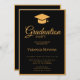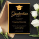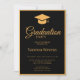 Black And Gold Classic Graduation Cap Party Invitation script d'études supérieures portes ouvertes obtention d'un diplôme en photo. Ajoutez vos photos préférées avec une élégante calligraphie script et un collage de grille photo.
