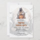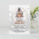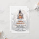 Créez une invitation unique pour la partie de sculpture citrouille avec un fantôme de squelette aquarelle avec des jack-o-lanterns et des chauves-souris sur le devant et un citrouille d'Halloween portant un casquette violet à l'arrière.