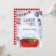 Cette invitation de barbecue de la fête du Travail patriotique est conçue pour correspondre à notre collection aquarelle du 4 juillet ! Ce design présente des illustrations sur le thème du rouge, du blanc et du bleu, y compris des feux d'artifice, des ballons, une banderole, un chapeau, un barbecue et une bordure aquarelle bleu clair. Le verso présente un motif assorti qui complète parfaitement l'avant.