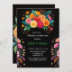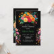 Illustration de bouquet floral stylisé et dynamique, mêlant fleurs colorées dans les tons rose, orange, jaune et rouge. Les fleurs sont disposées dans une composition vive et fantaisiste, liées avec un ruban de satin rose. Des étoiles dorées sont parsemées autour du bouquet, apportant une touche magique. Contre un arrière - plan noir spectaculaire, ce design accrocheur est parfait pour les invitations de mariage, papeterie romantique ou art numérique à thème de célébration.