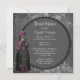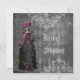 Les invitations fraîches et déplaisantes de Fête de la mariée de Halloween avec une jeune mariée squelettique terrifiante fantastique se sont habillées dans une belle robe de mariage noire, rose et verte avec des ornements de papillon. Elle est sur un noir gothique vintage élégant et élégant, gris et l'arrière - plan chic minable blanc de collage avec les décorations blanches fleuries de rouleau, une libellule, antiquité s'est fané écriture et motif élégant de harlequin. Sur l'inverse ce de goth génial les invitations est les perles et le tapis noirs imprimés fascinants de dentelle avec le texte pour que vous personnalisiez avec vos détails d'événement. Invitations chics et à la mode d'amusement. Tout les texte peut être facilement customisé pour répondre à vos besoins et vous pouvez changer le style de police, la couleur et la taille de la police si vous désirez. Si vous avez besoin de n'importe quelle aide customisant votre produit svp me contactez par mon magasin et je serai heureux d'aider. Le tapis de perle par le ©Hazel Kinvig-Paul www.design-a-dream.co.uk satisfont notent - tous les invitations sur Zazzle ont des images imprimées d'appartement.