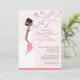 Commencez votre événement outre de la droite avec notre invitation nuptiale de douche de fleurs de cerisier à la mode et élégantes comportant une belle jeune mariée d'Afro-américain réglée sur un pâle - arrière - plan rose avec un rose plus foncé de retour. Customisez juste notre invitation avec votre information de wedding shower et vous êtes tous placez pour aller. Disponible dans d'autres combinaisons de couleurs dans notre magasin chez www.celebrateitweddings.com. Le contrôle notre assortiment vous remercient des notes, des autocollants et des boutons nuptiales dans notre magasin