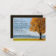 Une photo d'un arbre d'érable pendant la saison craquante d'automne d'automne, c'est feuille tournant jaune, orange et brun. C'est feuille commencent à incomber à l'herbe verte ci-dessous. L'arrière - plan montre une silhouette molle de scène de montagne avec le ciel nuageux. Personnalisez cette invitation avec votre information nuptiale de douche. Le dos a l'abondance de la pièce pour l'information d'enregistrement. Ces invitations sont grandes pour le thème rustique ou d'érable d'arbre d'automne ou d'automne de saison.