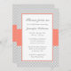 Un motif gris élégant de chevron avec les accents de corail est décrit à cette invitation nuptiale moderne de douche. De très bon goût et mignon -- Personnalisez facilement pour votre douche nuptiale !