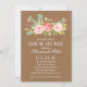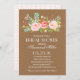 Cette invitation de Fête de la mariée comporte de belles fleurs watercolored sur un arrière - plan de Papier d'emballage. Envoyez à vos invités un invitation qu'ils n'oublieront pas ! Pour une invitation bien plus mémorable choisissez une forme découpée avec des matrices, un papier texturisé ou un double papier épais. Disponible dans des couleurs multiples.