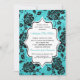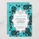 Ce bleu de turquoise affligé élégant et moderne, invitation nuptiale de douche de damassé florale noire et blanche a le grand type les fleurs de pivoine là-dessus qui vont voir texturisé subtil. Il est entièrement personnalisable. Le type de papier est également personnalisable. Si vous avez besoin de n'importe quels autres articles assortis, envoyez svp votre demande à niteowlstudio@gmail.com.