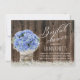 Le souffle du bébé rustique et les invitations bleues de Fête de la mariée de pot de maçon d'hortensia.
