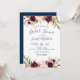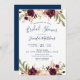 Invitation rustique florale de Fête de la mariée de bleu marine de Bourgogne