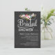 Invitations florales de wedding shower de tableau -- Versez la future mariée avec un bouquet romantique d'acclamation fleurie ! Fleurs abstraites mignonnes roses et de blanc avec des roses de thé rose et accents de corail et bleus dans un motif floral de guirlande au-dessus de la calligraphie élégante moderne sur le tableau noir de gris d'ardoise. Ajoutez juste le nom de la future mariée, de la date, du temps et des détails, et personnalisez l'information nuptiale d'enregistrement. NOTE : Montré sur de petites cartes d'invitation de petite taille. Personnaliser de clic il pour changer la taille, le style, les polices, la couleur et la disposition pour créer vos propres invitations abordables de wedding shower.