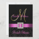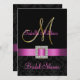 Invitation Fête de la mariée noire rose d'initiale d'or de