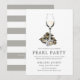 Un ensemble d'invitations Fête de la Perle pour votre prochaine fête de chasse aux perles. Ces invitations présentent un texte simple de couleur gris charbon, ainsi qu'une illustration unique d'huître et de vin blanc centrée vers le haut. Au verso de l'invitation se trouve une couleur gris clair. Tous les éléments de cette invitation sont ajustables en utilisant la fonction de personnalisation. Amusez-vous à ajouter vos propres détails et à la rendre unique.